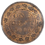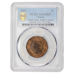 Available for sale is a Canada 1891 Small Date Small Leaves 1 Large Cent Coin - PCGS MS-63 Red & Brown