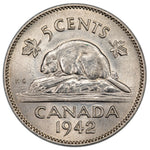 Available for sale is a Canada 1942 Nickel 5 Cents Coin - MS-62