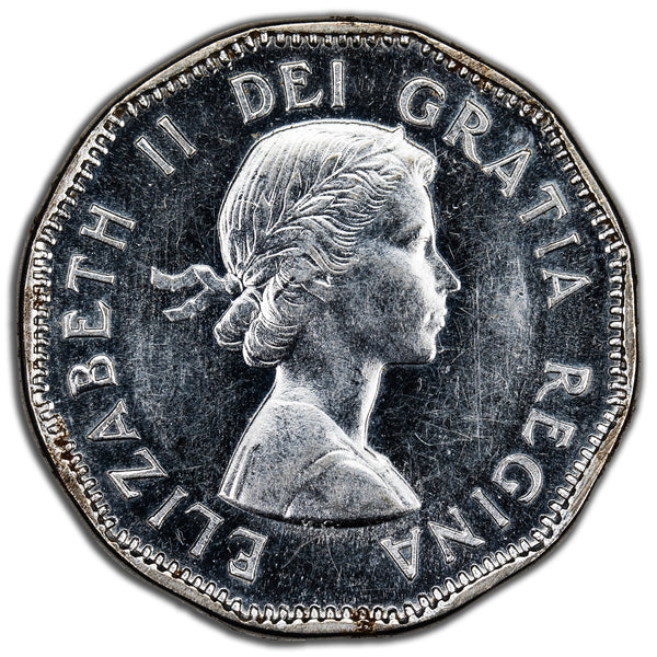 Available for sale is a Canada 1953 Shoulder Fold Far Leaf Mule 5 Cents Nickel Coin - Rust Spot