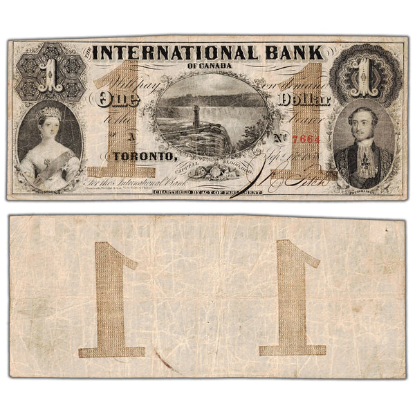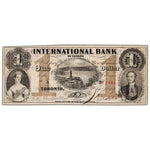 Available for sale is a $1 1858 International Bank of Canada Note #380-10-08-04 - Mounted on Back  Country: Canada - The International Bank of Canada Year: 1858 Denomination: 1 Dollar...