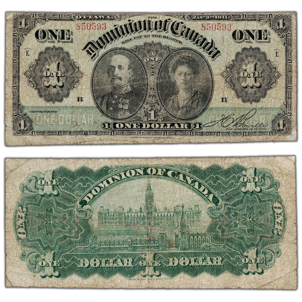 SOLD $1 1911 Dominion of Canada Note Green Line Series E DC-18b - Circulated Country: Canada - The Dominion of Canada Year: 1911 Denomination: 1 Dollar Signatures: Boville Prefix/Series: E...
