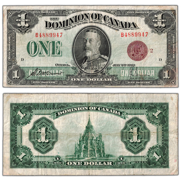 Available for sale is a $1 1923 Dominion of Canada Note Bronze Seal Series B DC-25i - F/VF