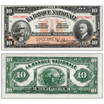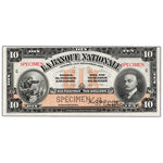 Available for sale is a $10 1922 La Banque Nationale Canada Chartered Specimen Note #510-22-04s - UNC