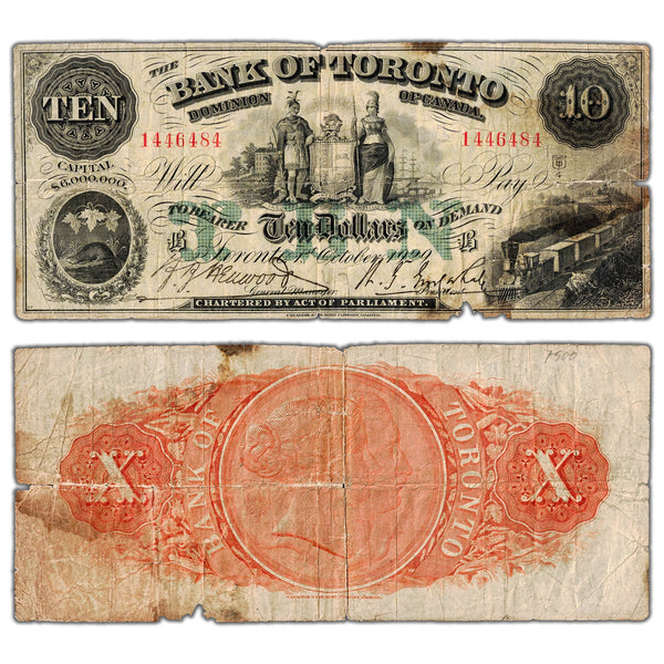 Available for sale is a $10 1929 Bank of Toronto Chartered Note #715-22-44 - Damaged
