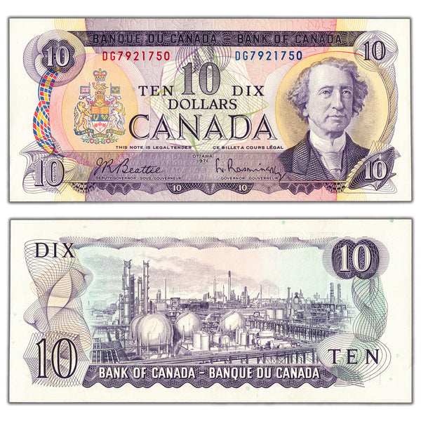 Available for sale is a $10 1971 Bank of Canada Note Beattie-Rasminsky DG Prefix BC-49a - Ch UNC