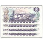Available for sale is a $10 1971 Bank of Canada Notes DL Short Run Prefix BC-49a - 4 Consecutive AU-58