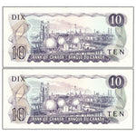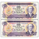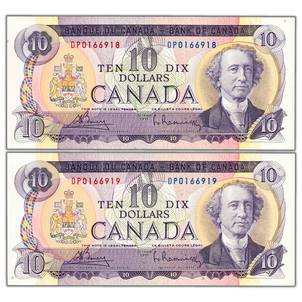 Available for sale is a $10 1971 Bank of Canada Notes DP Prefix BC-49b - 2 Consecutive Ch UNC