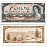 Available for sale is a $100 1954 Bank of Canada Note Beattie-Coyne A/J Prefix BC-43a - VF/EF