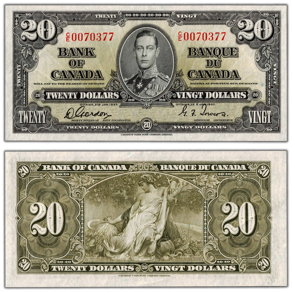 SOLD $20 1937 Bank of Canada Note Gordon-Towers C/E Prefix BC-25b - AU/UNC