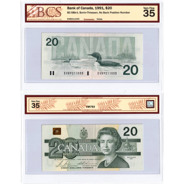 SOLD $20 1991 Bank of Canada Note EVB Prefix no BPN BC-58b-ii - BCS VF-35