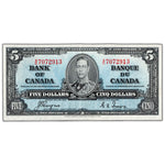 Available for sale is a $5 1937 Bank of Canada Note Coyne-Towers X/C Changeover Prefix BC-23c - EF