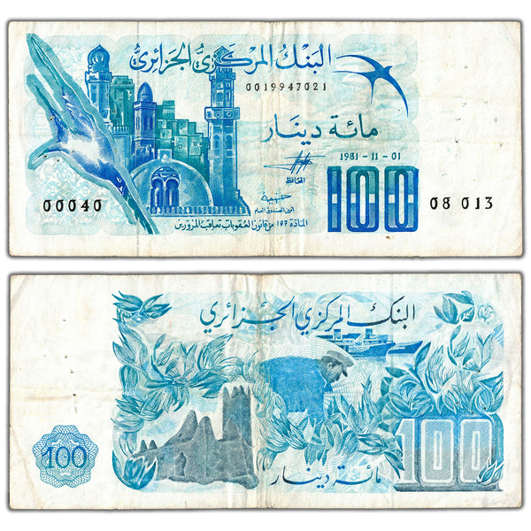 Available for sale is a Algeria 1981 100 Dinars Note P #131a - Pinholes
