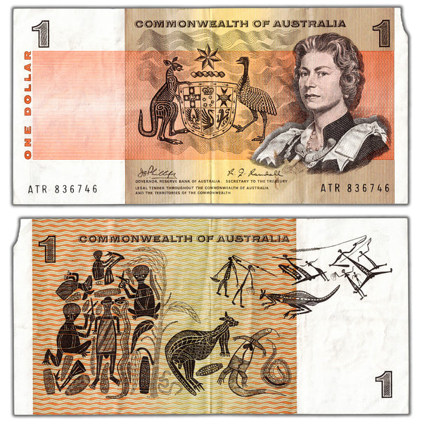 Available for sale is a Australia ND (1966-72) $1 One Dollar Note P #37c - Missing Corner  Country: Australia Year: No Date (1966-72) Denomination: 1 Dollar Prefix/Series: ATR Catalogue: Pick...