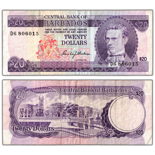 Available for sale is a Barbados ND (1973) $20 Twenty Dollars Note P #34a - Circulated