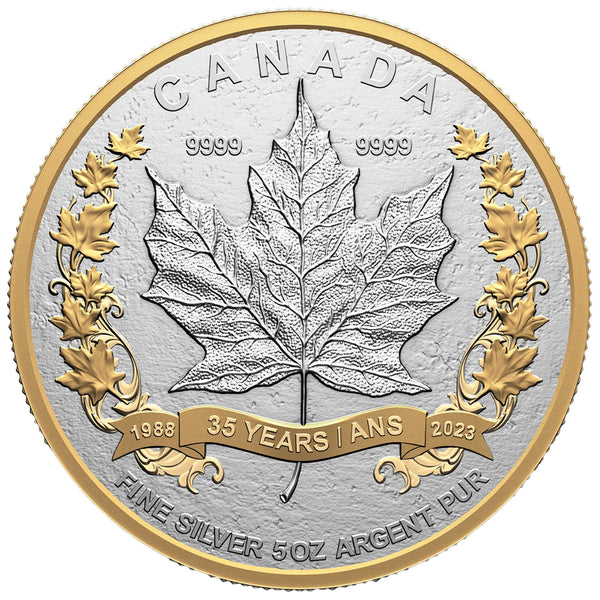 Available for sale is a Canada 2023 $50 35th Anniversary of the SML 5oz .9999 Fine Silver Coin