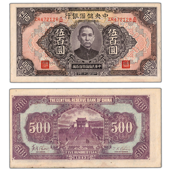 Available for sale is a China 1943 500 Yuan Note P #J25 - Light Staining