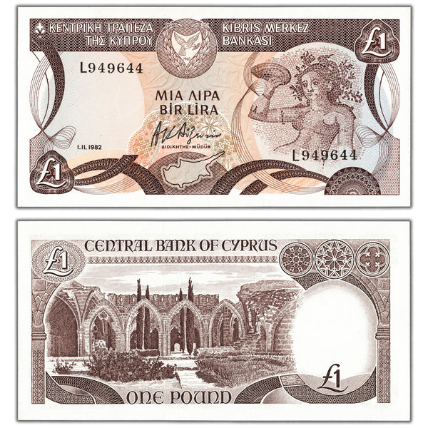 Available for sale is a Cyprus 1982 1 One Pound Note P #50 - Choice Uncirculated
