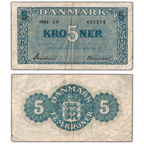 Available for sale is a Denmark 1944 5 Five Kroner Note P #35a - Fine