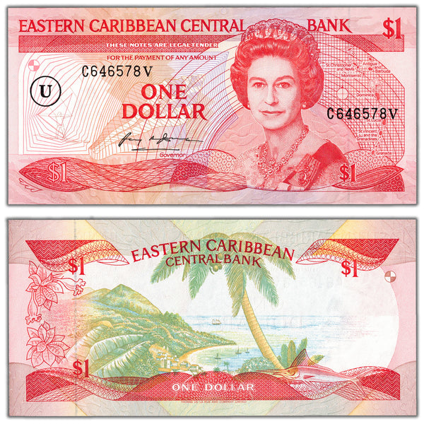 Available for sale is a East Caribbean States ND (1985-88) $1 One Dollar Note P #17u - Choice UNC