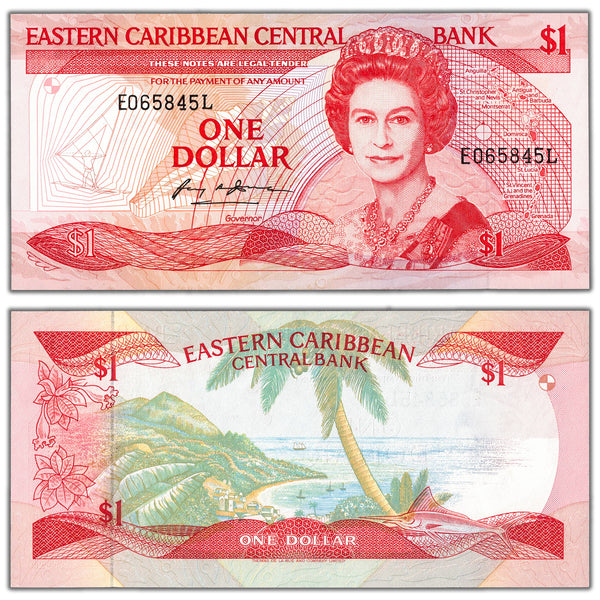 Available for sale is a East Caribbean States ND (1988-9) $1 One Dollar Note P #21l - Choice UNC
