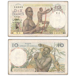 Available for sale is a French West Africa 1946 10 Ten Francs Note P #37 - EF (minor staining)