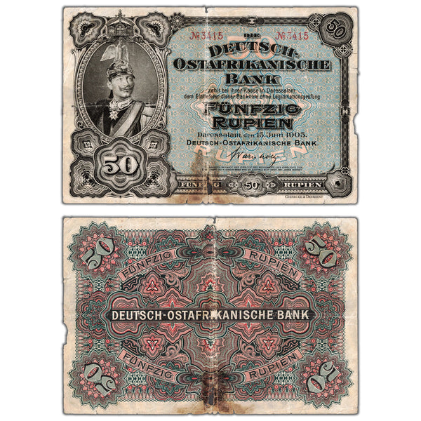 Available for sale is a German East Africa 1905 50 Fifty Rupien Note P #3a - Filler