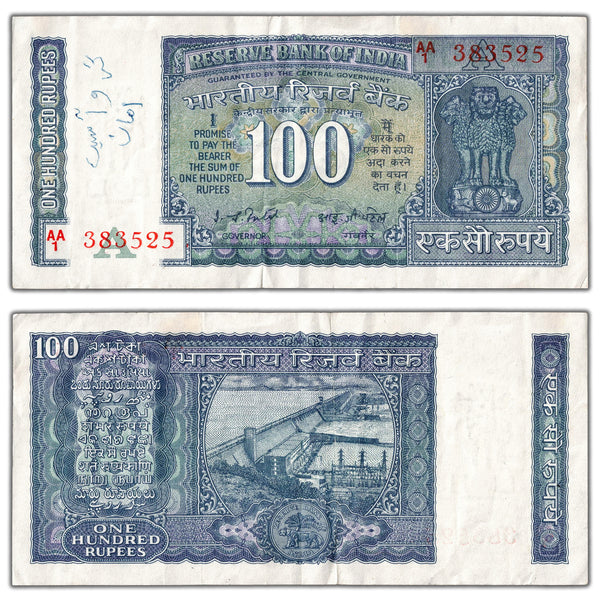 Available for sale is a India ND (1977-82) 100 Rupees Note P #64d - Writing (staple hole)