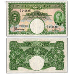 Available for sale is a Malaya 1941 $5 Five Dollars Note P #12 - VF/EF