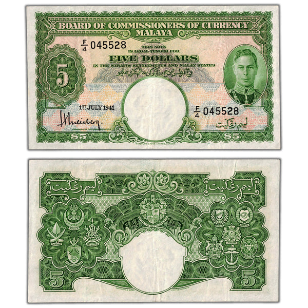 Available for sale is a Malaya 1941 $5 Five Dollars Note P #12 - VF/EF Country: Malaya  Year: 1941 Denomination: 5 Dollars Prefix/Series: F/4 Catalogue: Pick #12 Grade: VF/EF Serial/SKU:...