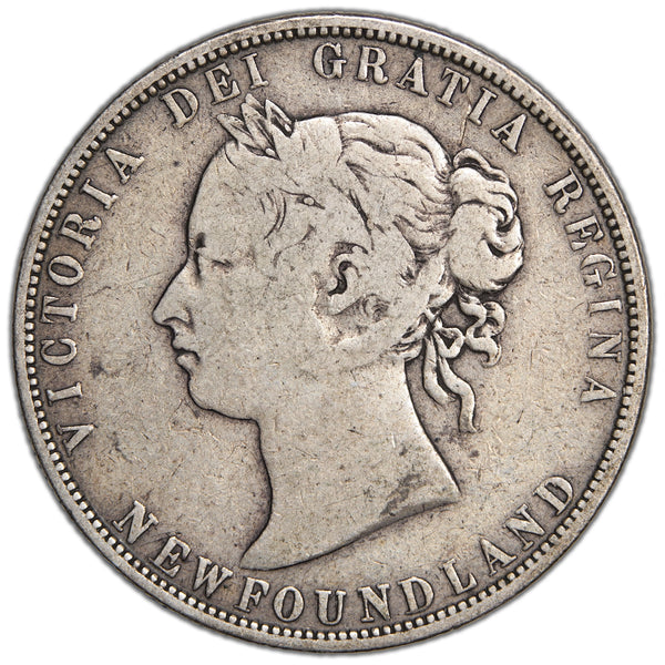 Available for sale is a Newfoundland 1874 50 Cents Half Dollar Silver Coin - VG