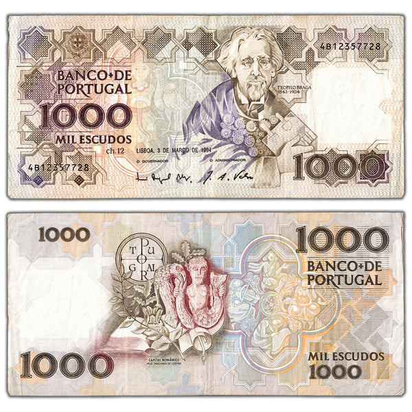 Available for sale is a Portugal 1994 1000 Escudos Note P #181k - VF