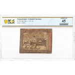Available for sale is a United States 1773 5 Shillings Pennsylvania Colonial Currency Note Fr. PA-166 - PCGS EF-45