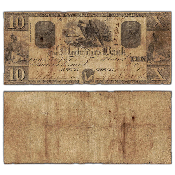 Available for sale is a United States 1847 The Mechanics Bank $10 Ten Dollars Obsolete Note - Pinholes