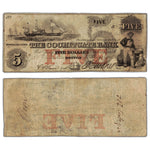 Available for sale is a United States 1851 The Cochituate Bank $5 Five Dollars Obsolete Note - Pinholes