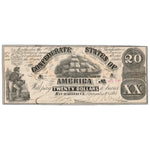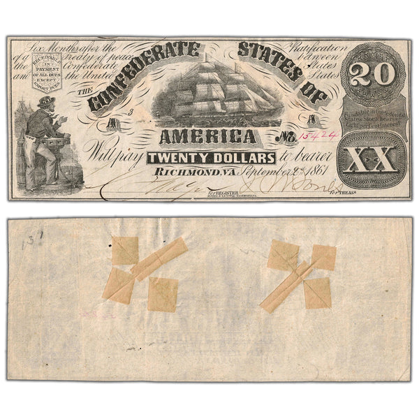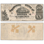 Available for sale is a United States 1861 Confederate States of America $20 Note - Damaged Back