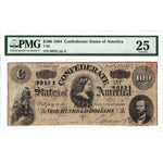 Available for sale is a United States 1864 $100 Confederate States of America Note T-65 - PMG VF-25