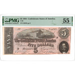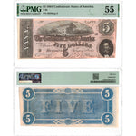 Available for sale is a United States 1864 $5 Confederate States Note T-69 - PMG AU-55