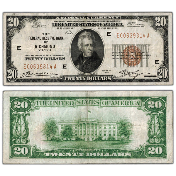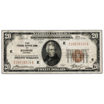 Available for sale is a United States 1929 $20 Richmond, VA National Currency Note - VF/EF