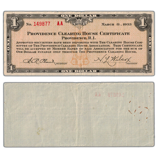 Available for sale is a United States 1933 $1 One Dollar Depression Script Note - Providence, R.I.  SKU: 149877
