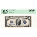 Available for sale is a United States 1934 $10 Silver Certificate Note Fr. 1704 - PCGS Ch UNC-64 PPQ