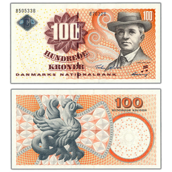 Available for sale is a Denmark 2002 100 Kroner Note P #61a - AU+