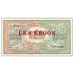 Available for sale is a Estonia ND (1928) 1 Kroon Overprint on 100 Marka Note P #61b - VF+