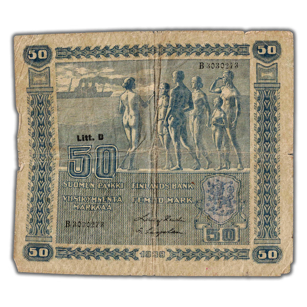 Available for sale is a Finland 1939 50 Markkaa Note P #72a Signature #4