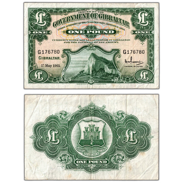 Available for sale is a Gibraltar 1965 1 One Pound Note P #18a - VF