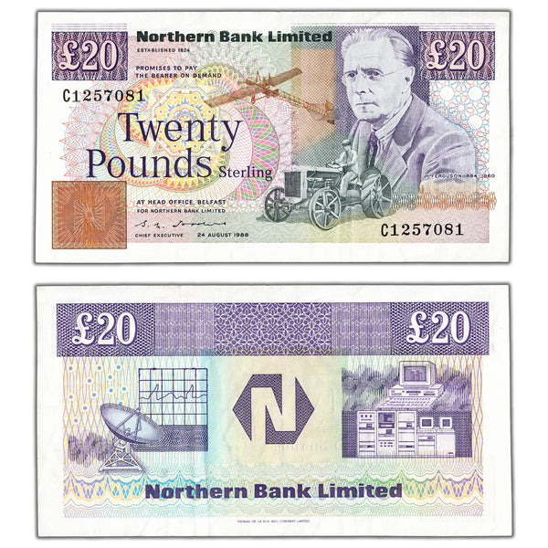 Available for sale is a Ireland Northern Bank Ltd 1988 20 Twenty Pounds Note - EF