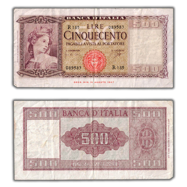 Available for sale is a Italy 1947 500 Lire Note P #80a