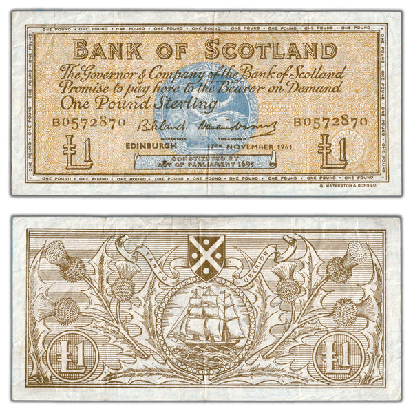 Available for sale is a Scotland 1961 1 One Pound Note SC #107a - VF