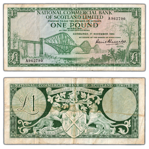 Available for sale is a Scotland National Commercial Bank 1961 1 One Pound Note P #269 - Staining