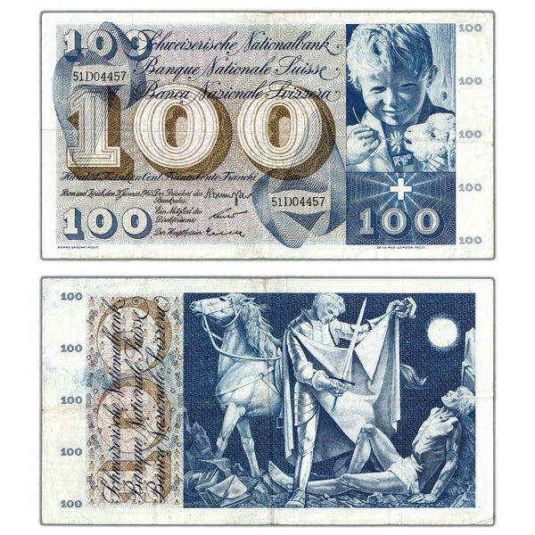 Available for sale is a Switzerland 1965 100 Francs Note P #49h - Circulated