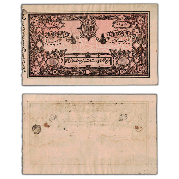 Available for sale is a Afghanistan SH1298 (1919) 5 Rupees Note P #2